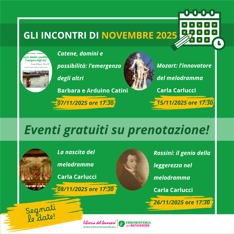 Consulta il nostro calendario di novembre e prenota subito il tuo posto per gli incontri culturali che ti interessano… tutti gratuiti!