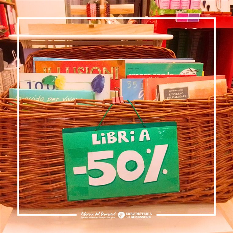 Nel cestone della Libreria del Benessere puoi trovare una selezione di libri imperdibili: narrativa, ecologia, creatività e altro… con l’eccezionale sconto del 50%!