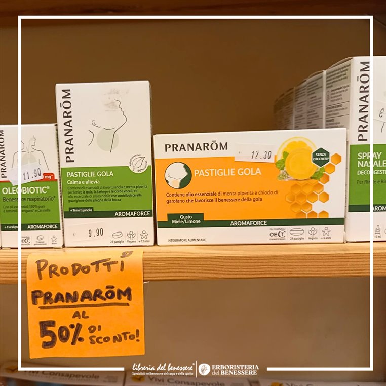 Con lo sconto del 50% puoi avere i fantastici prodotti Pranarom, a base di oli essenziali puri e del tutto naturali: pastiglie per la gola, spray nasale, capsule per il benessere respiratorio o anti-nausea…